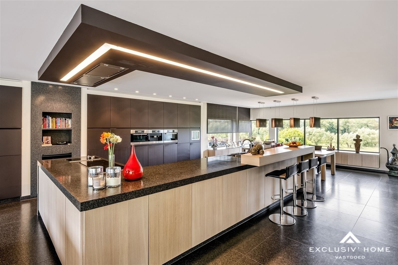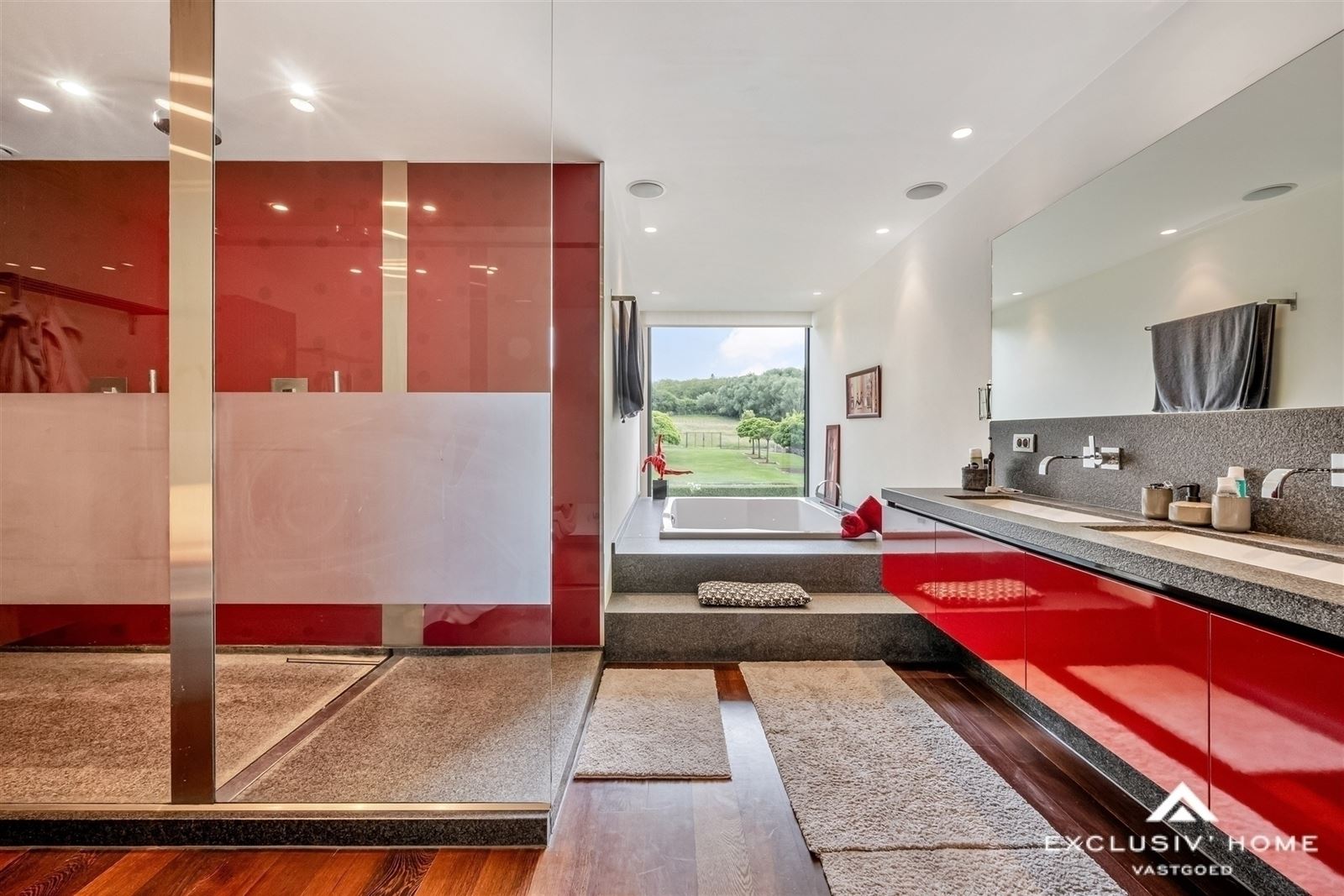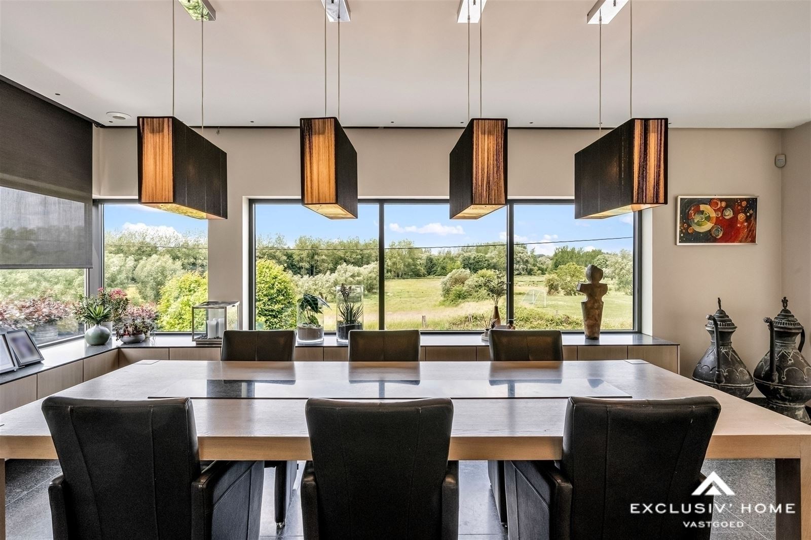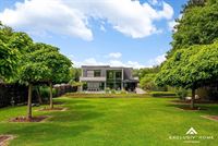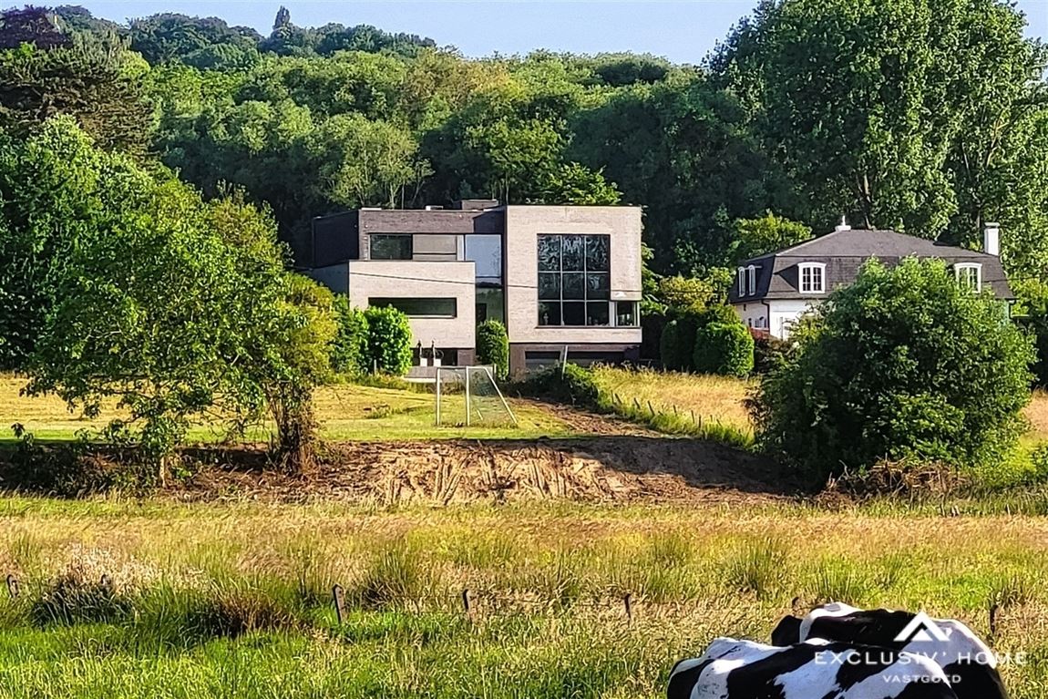This exclusive designer villa is located in a quiet, rural suburb of Geraardsbergen, just 2 km from the city centre. Impressive in both size and architecture, the villa is offered together with a rear garden and meadow, totalling 1.6 ha.