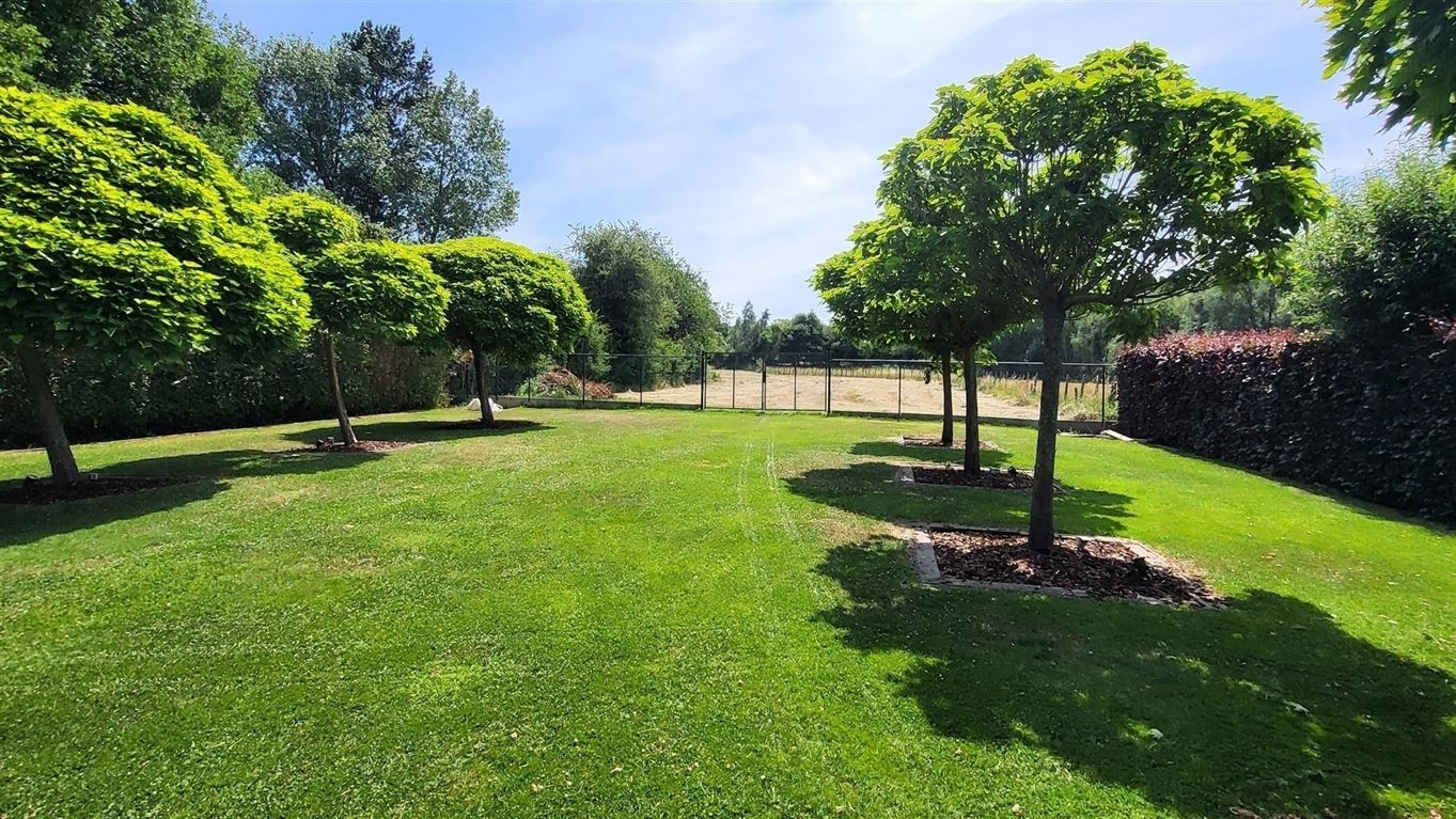 The beautifully landscaped garden with swimming and ornamental ponds, as well as (covered) terraces, invites peace and relaxation. The garden is fully enclosed with mature hedges and trees to ensure optimal privacy. The rear meadow of approximately 1.3 ha is perfectly suited for keeping animals.